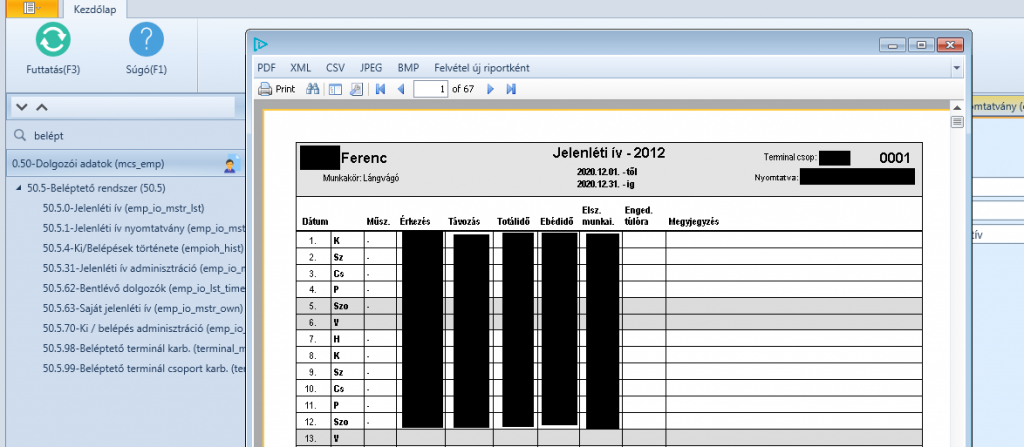 Jelenléti ívek és különböző riportok és kimutatások