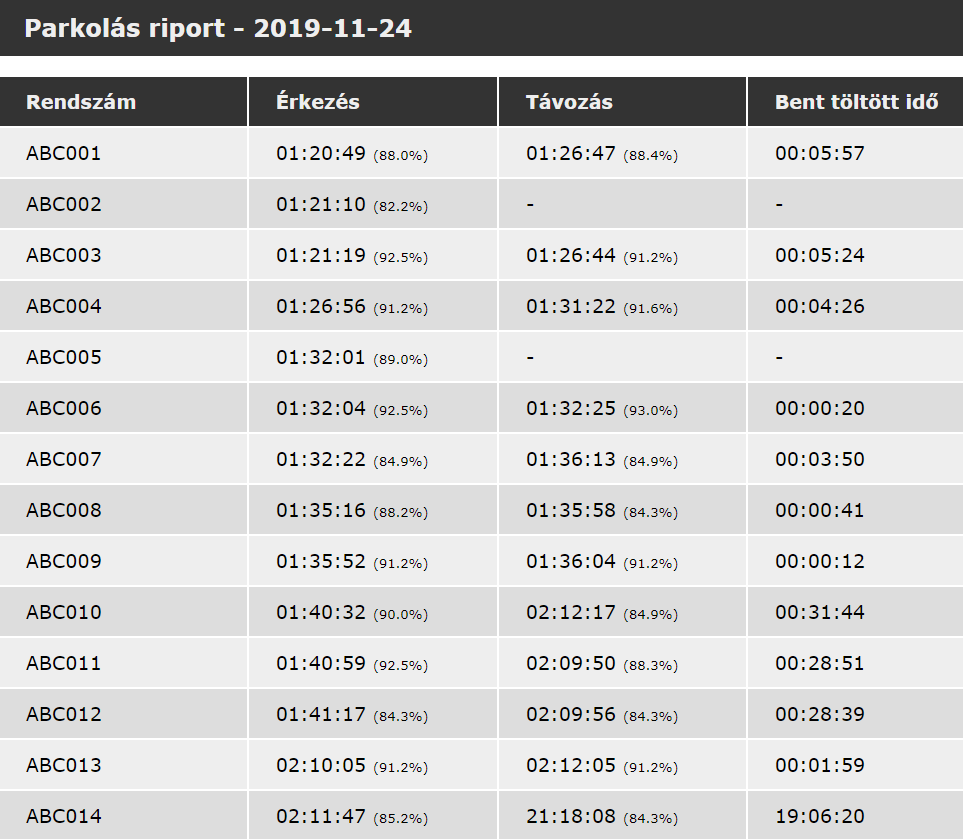 Gépjármű figyelő alkalmazásunk segítségével pontosan láthatod, hogy milyen gépjármű mozgások történnek a telephelyeiden. Az összes beérkező és kimenő forgalomról riportokat kapsz, mely felhasználásval jobban átláthatod céged működését és optimalizálhatod a munkafolyamataidat. Láthatod az áruszállítások érkezését és a lepakoláshoz szükséges időket is nyomon követheted.